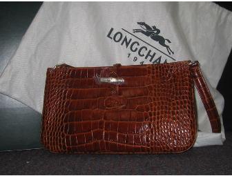 This stunning crocodile grain calfskin leather bag by Longchamp is trimmed with cowhide.