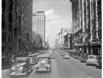 WONDERFUL POSTER OF VINTAGE HOUSTON..... A LARGE 18 X 24 INCHES IN SIZE AND PRINTED ON HEAVY POSTER STOCK PAPER....... MAIN STREET HOUSTON AT RUSK LOOKING NORTH, HEAVY STREET TRAFFIC AND RETAIL STORES, MID 1930'S... SHIPS TO MOST STATES FOR $8.00 ...... NOT SHOWN IS GALLERY INFORMATION BENEATH IMAGE....