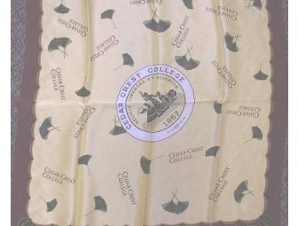 A sumptuous red and yellow silk scarf with gingko leaves and the college seal adorn this 26" x 26" square scarf. CCC scarf made of 100% silk. Fun to wear and great to give or receive as gifts! Here is a great way to make a fashion statement and to show your school spirit!