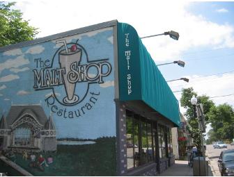 A $10 gift certificate to be used for dining in or carry-out at The Malt Shop! Yum yum!