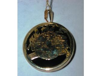 This 10kt gold and black onyx "Save The Earth" pendant hangs from an 18" chain and was donated by Lost River Caverns.