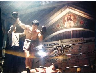 This photo was autographed by Sylvester Stallone and the photo is from the opening scene of the original Rocky movie.