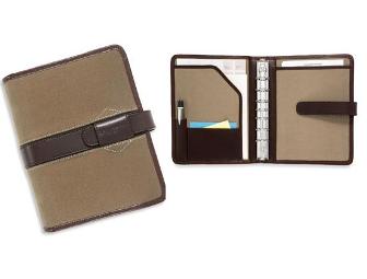 The casual style and urban feel of Daytimer's rugged Mariner 1" Binder is perfect for the professional who expects durability and quality. WaxWear™ fabric develops a unique patina with use. Leather trim and contrast stitching highlight its good looks. Leather interior pockets hold loose papers, business cards, and note pads. Slip-tab closure holds contents securely.