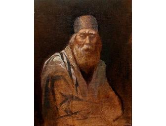 "Seated Rabbi" -- framed Giclee color print of an original oil painting by Chaim Wolfe