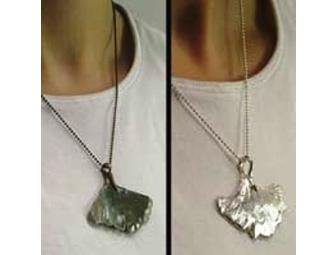 The ginkgo leaf represents the Cedar Crest College Alumnae Association. Each necklace starts out as a real leaf that is coated with Precious Metal Clay, and fired in a kiln. In the kiln all the organic materials burn away leaving a piece of pure silver. No two are alike.