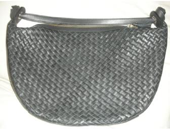 This adorable black woven leather purse will look perfect with any spring ensemble.
