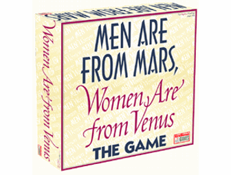 "Do you know what your loved one is thinking?" Do you dare find out?" Team up with your significant other and unlock the mysteries of the opposite sex with the game inspired by John Gray's phenomenal bestseller. Game features categories such as "Mars & Venus In the Bedroom"; "In the Workplace"; "On a Date"; and "In Love", and inspires story-telling, compliment giving, and lots of hugs and kisses!