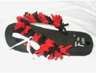 One case(36 prs) Red/Black Fan Flops. Open order sizes or suggested case breakdown. Ground shipping provided for auction.