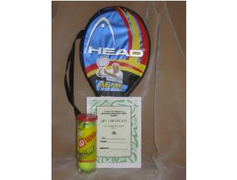 If you LOVE tennis, you will love this package with tennis racket, tennis balls, gift certificate for one hour of private lessons from Robin with Denton Country Club and 4 Jr. lessons.