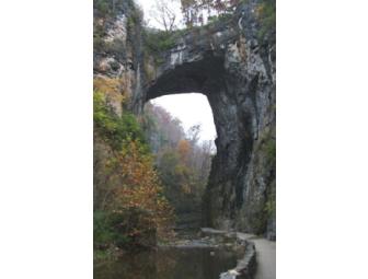 Use this complimentary pass for four (4) to visit the Natural Bridge in the Shenandoah Valley, a unique geological formation once surveyed by a young George Washington and called "the most sublime of nature's works" by former owner Thomas Jefferson. It is considered a National Historical Landmark and one of the Seven Natural Wonders of the World. The pass includes the Monacan Indian Village, the Drama of Creation, the Caverns and the Wax Museum.