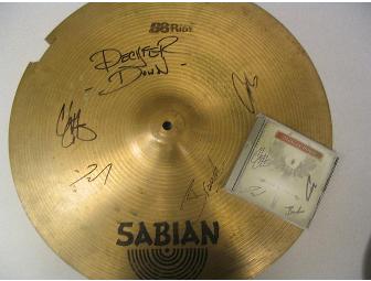 This cymbal has been autographed by the band and includes an autographed copy of their cd.