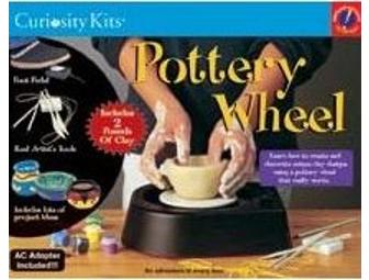 This compact tabletop wheel is perfect for beginners, and is very affordable. It operates via a foot pedal and includes an AC Adapter. Also included are 2 lbs. of clay, sculpting and modeling tools, 6 colors of paint, brushes for decorating, and a 12-page illustrated instruction booklet.