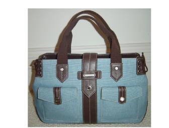 Oh so cool Escada Sport Handbag in blue linen and brown leather.
