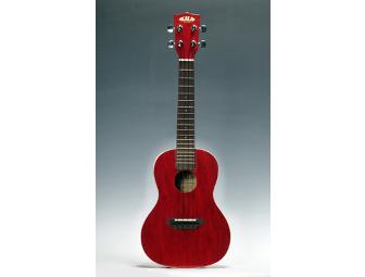 KALA HAWAIIAN COLOR SERIES UKULELES..Kala Brand Ukuleles paint the Uke World with Classic Mahogany Ukuleles -This offering is a Transparent Cherry Red Concet Ukulele. Beautiful White Pearloid binding trims out the top and back. Chrome Die-Cast Tuners will keep Your Uke in Perfect Tune.