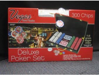 Get ready for the perfect boys (or girls!) night with this deluxe Vegas 300-piece wooden box poker chip set. All you need is some beer, chips, a good poker face, and you are all set to go!