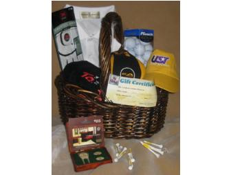 Round of golf for 4 at Diamond Oaks Country Club and a round of golf for 2 at Lantana Golf Club; includes cart, GPS & practice balls, a $25 Starbucks Gift Card, golf glove, Pinnacle Golf Box of 24 balls, nail salon gift certificate, Tommy Bahama divot and ball maker and a golf towel.