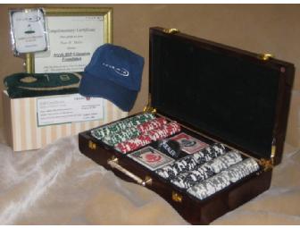 A round of golf for four at Tour 18-Dallas and a round of golf for four at Hidden Creek Golf Course; both outings include cart. Also included in this package are poker chips in a wooden case and Tour 18 Golf accessories.