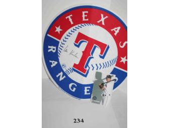Texas Rangers pennant signed by Ian Kinsler along with an Ian Kinsler baseball card.