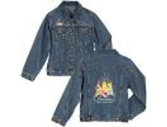 Adorable denim jacket with a pink crown on the front and all the princesses together on the back of the jacket.