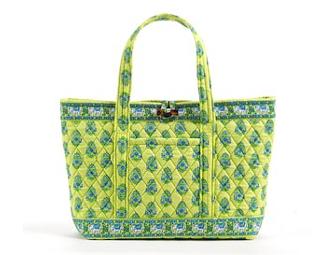 One of Vera Bradley's most popular carry-alls. Comfortable handles, a tortoise toggle closure, an outside slip-in pocket for your PDA or cell phone, plus two more slip-ins and a zip pocket inside.