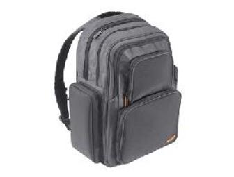 This extra-large capacity backpack features a padded notebook sleeve to hold laptops with up to 15.4" screens and a zipper pocket provides storage for cords and batteries. The front zip compartment contains a digital accessory panel. On the sides you'll find a zippered water bottle pocket and a fleece-lined MP3 pocket with headphone port. A large center storage compartment with mesh pocket holds books, files or clothes. Additional features include a drop pocket for keys and coins and air-flow padding on back and shoulder straps.