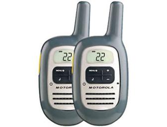 - Two 2-way radios offer a range of up to five miles for indoor and outdoor communication