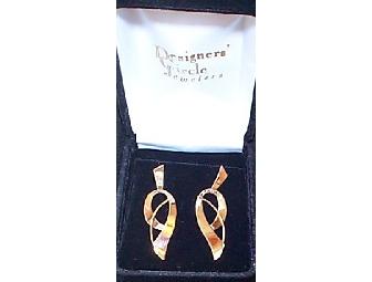 Earrings crafter by The Touch measure 1.75" long by 0.5" wide in 14kt gold.