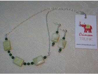 Silver Chrysoprase and Jade Earring and Necklace Set