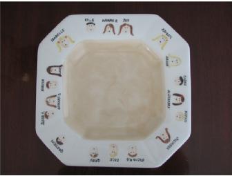 This beautiful Ceramic Platter was made with love by Mrs. Meekin's Kindergarten Class. We utilized their little thumbprints to make a unique drawing of each child with their eye and hair color. We also painted the name of each child next to the thumbprints that are made to look like them. The Platter also features a crackled look in the glaze to enhance the beauty of the piece.