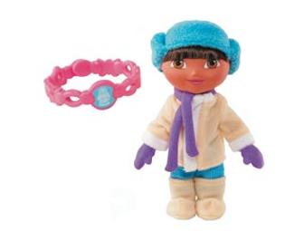 These 5-inch Dora dolls are styled just like Dora’s Dress-Up Adventure dolls, only this time the adventure is Around the World! Each Dora doll is dressed in a traditional costume from one of the countries Dora visits in the “Dora’s World Adventures” episode of her show. Includes travel pouch & country post cards! Four Dora dolls are included in the set: France, China, Tanzania, and Russia. Ages 3+.