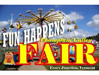 Who doesn't love the fair? Especially the Champlain Valley Fair, Vermont's largest agricultural and entertainment event. This Family Fun pass includes 2 adult admission tickets, 2 children's admission tickets, 1 single day parking pass and 36 Midway Ride Tickets. It's a whole day of fun all wrapped up!