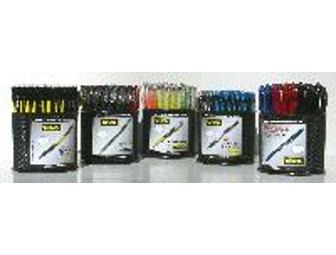 Six (6) compact Vivo Pen & Pencil Drums, each just 4.5" diam. All with upc. New Triple Gel has 3x ink of most gels, Vx Liq. Highlighter, Grip Mech. Pencil, Ultra Ballpoint Stick & RT, Ultra Gel.....419 quality pens & pencils! Booth 2169. See how Vivo's unique deep discounts benefit your students & your store. Vivo - the next great pen brand.
