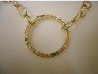18 kt. yellow gold diamond & emerald circle necklace set with 24 round brilliant cut diamonds weighing 0.50ct. and 8 emeralds weighing 0.16ct. Stunning!