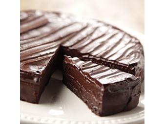 This 8" chocolate cake, topped with a chocolate ganache, is incredibly dark, dense, moist, and rich.