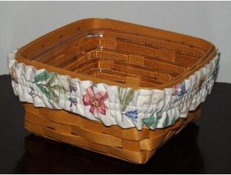 1998 Longaberger Medium Berry baskey in classic stain, includes protector and botanical fields garter.