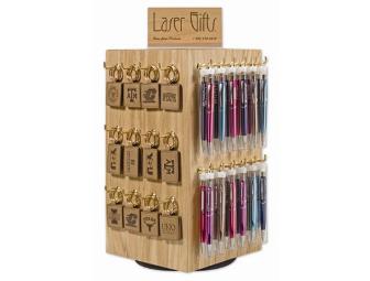 Design your own Custom Counter Display from Laser Gifts. You choose any 4 sides! All products can be customized for your school. Products available: Pens (wood and metal), Pocket tools, Whistle flashlights, Magnets, Key rings, Rulers, Letter openers and magnifiers. Backstock is provided to ensure you receive the full 500.00 wholesale value!