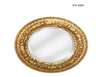 This feminine design reveals embellished details such as scrolled fillets, flowerets and leaves. Dimensions are 29" round with a 9" molding.