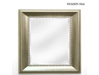 Beveled glass is framed by an elegantly detailed scrolled fillet and leaf design with an antique silver finish. Dimensions are 24" X 36" with a 6 1/2 " molding.