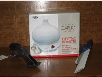Get your hands on these! Electric garlic toaster, magic knife for perfect slicing, toss-and-chop tool, and food chopping scissors.