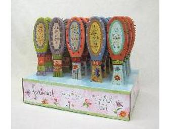 Who said brushes can't be fun? Hand painted wood brushes with pin-style bristles from Natural Life. Size: 2 1/2" x 8 1/2" Display holds 30 brushes. Size of Display: 13 3/4" x 8" x 3".