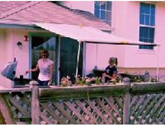 6 x 8 Fully Retractable and portable awning. Attaches to home, deck, vehicals, trees, fences... almost anything! 1 person set up in about 30 seconds.