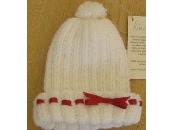 Super soft and warm. White with red ribbon and bow. Handknit. Size: infant.