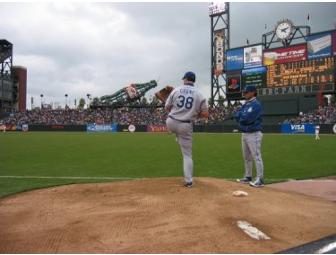 Front Row Seats on the Field for the San Francisco Giants. Enjoy these four front row seats for the These fantastic tickets are for Opening Night Game on Wednesday, April 4 at 7:15p against the division rivals Padres. These seats are right next to visitor's bullpen (6 feet away from the pitcher)! The seats are lots of fun and a unique experience. Plenty of foul balls come your way. Fire up the Tivos as it is very possible you will be on TV. Check out videos and photos at http://tsangs.us/sfgiants.htm