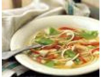 Next winter let me bring you a pot of chicken soup for dinner. I start by roasting a chicken with rosemary and 40 cloves of garlic. The soup is prepared with chicken, carrots, spinach, mushrooms, angel hair pasta and a couple of secret ingredients! Approximate quantity is two gallons.