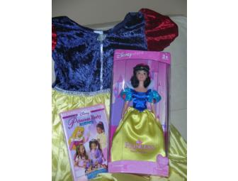 This adorable Snow White gift basket includes a Disney Princess doll, a Snow White dress-up costume and a "Princess Party" DVD.