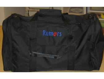 Medium-size black duffel bag perfect for weekend trips. Comes with free embroidered personalization of your choice (name, monogram, etc.).