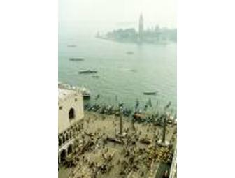 A bottle of delightful Tuscan table wine—Carpineto Dogajolo (80% Sangiovese and 20% Cabernet Sauvignon), a gold and black Venetian glass bottle stopper and four stylish tile coasters "frescoed" with advertisements for classic Venetian and Florentine hotels. Put up your feet and dream of sunset over the Venetian Lagoon.