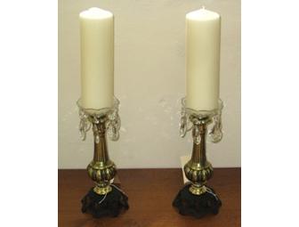 Set a romantic mood with pillar candles atop this pair of 12-inch gilt-and-crystal candleholders with fancy iron bases. Candlelight is yesterday's answer to Botox!