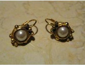 Gold plated, antique style pearl earrings for pierced ears. French wire backs.