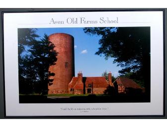 This unique architectural design graces the entrance of Avon Old Farms. A heartfelt remembrance of the tower that greets all boys as they journey to and from school. Framed poster measures 25 x 39.